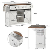 • Product size: Kitchen island 140 cm long, 45 cm wide, 94 cm high. This dining cart features three drawers and storage cabinets with sliding doors.