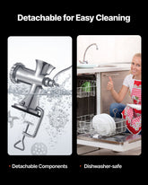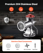 - Food-Grade 304 Stainless Steel: All parts of our heavy-duty meat mincer are made of food-grade stainless steel in one piece casting, with excellent rust resistance, corrosion resistance, and ease of cleaning. The fine mirror polishing process makes the body and the internal parts are more perfect. You donโt have to worry about the metal shavings falling off and cause waste of expensive ingredients.