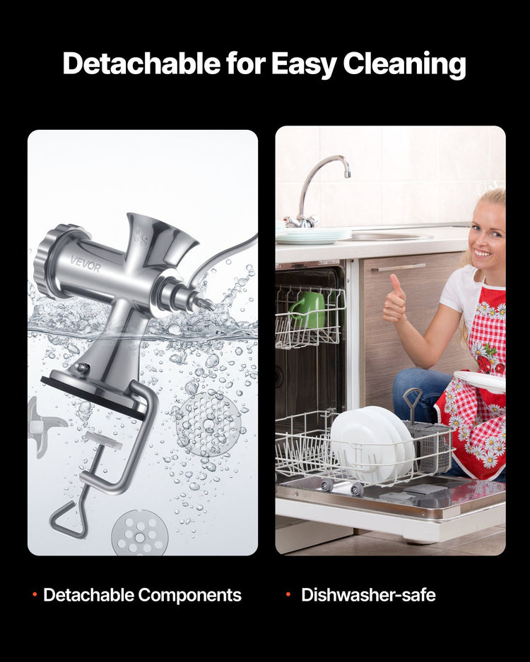 - Easy Installation and Cleaning: The manual sausage maker can be easily disassembled, allowing for quick and thorough cleaning of each component with our provided cleaning brush. Simply follow the sequential assembly, and you'll have the machine ready to use. Ergonomic handle reduces hands fatigue and maximizes grinding productivity.