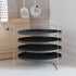 This set, consisting of four pizza trays and a steel pizza tray holder, is a great solution for preparing four pizzas or other snacks and frozen foods at once! Non-stick coating: These pizza trays are made of steel and feature a non-stick coating for durability and easy cleaning. Convenient pizza tray holder: The pizza trays are stored separately on the included steel holder, which features a safety lock for added stability. Stackable and foldable: Thanks to the stackable and foldable design, these pizza trays and the pizza tray holder are easy to store.