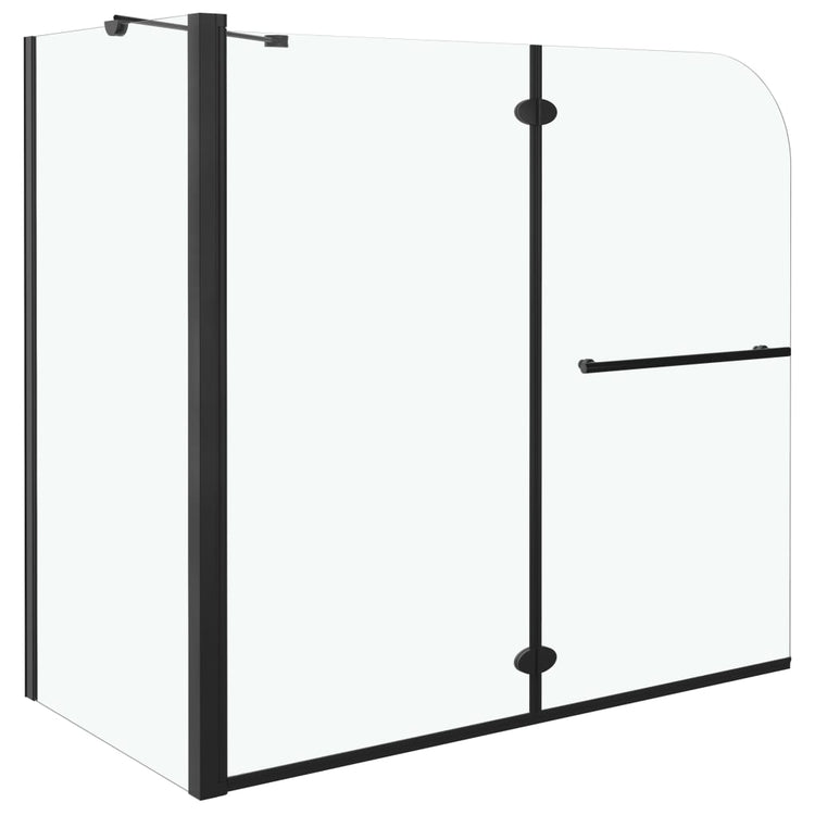 Bathtub Screen, 2-Way Foldable, Tempered Safety Glass, 120x68x130 cm, Black