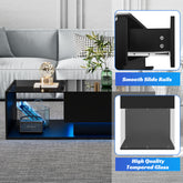 Product Name:LED Coffee Table, Modern High Gloss Coffee Table, Center Table with Glass, Modern Coffee Table for Living Room with Drawer (Black)